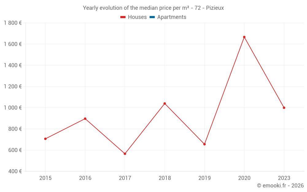 Evolution of the median price per m² of houses