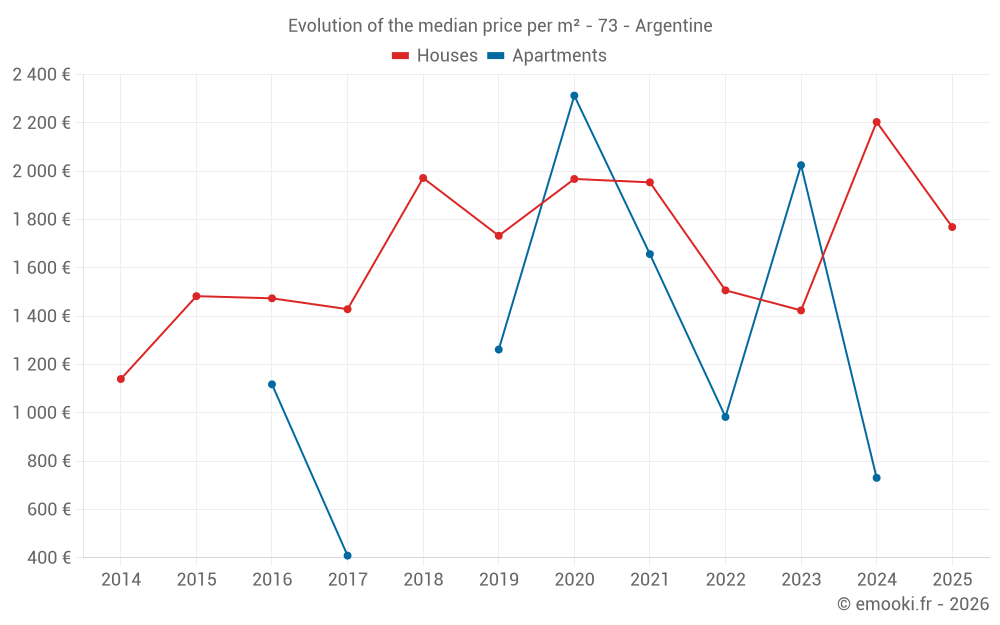 The median price on the 24 house transactions of the last 24 months in the municipality of Argentine was 2 090 € per square meter for a median property value of 192 500 €. Over this period, 60% of transactions were between 1 174 and 3 302 € per square meter (from the 2nd to the 8th deciles).