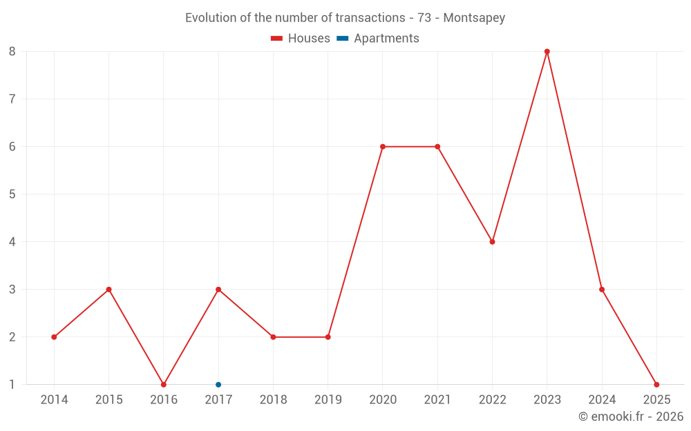 Real estate price map in the municipality of Montsapey, choose a section to see transactions by parcel.