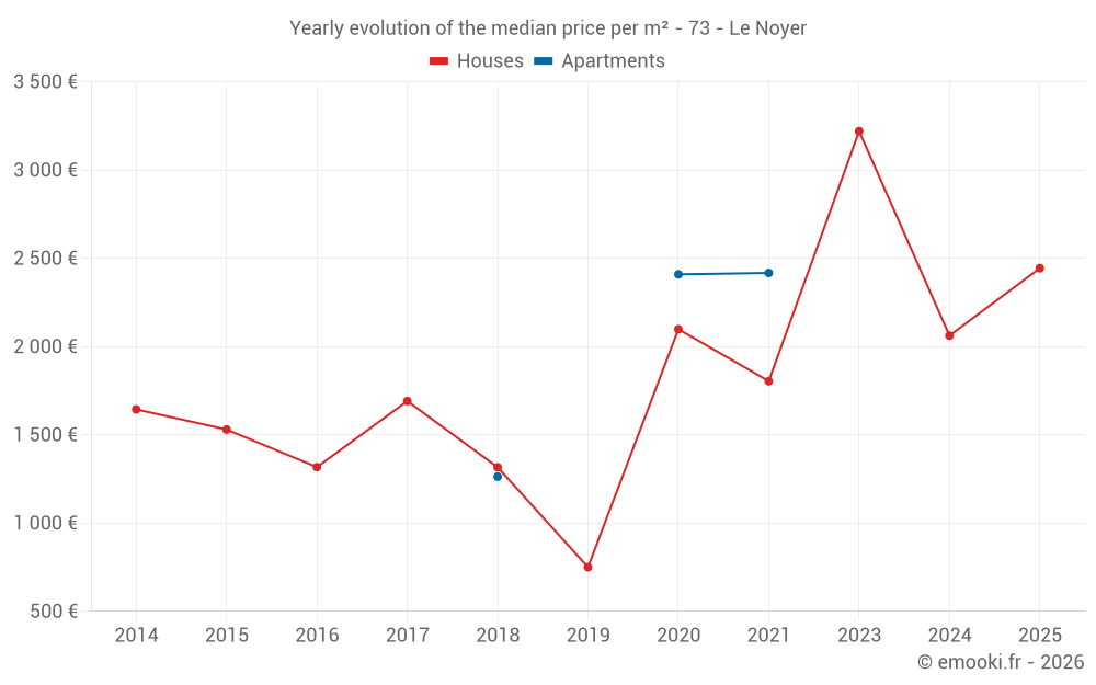 Real estate price map in the municipality of Le Noyer, choose a section to see transactions by parcel.