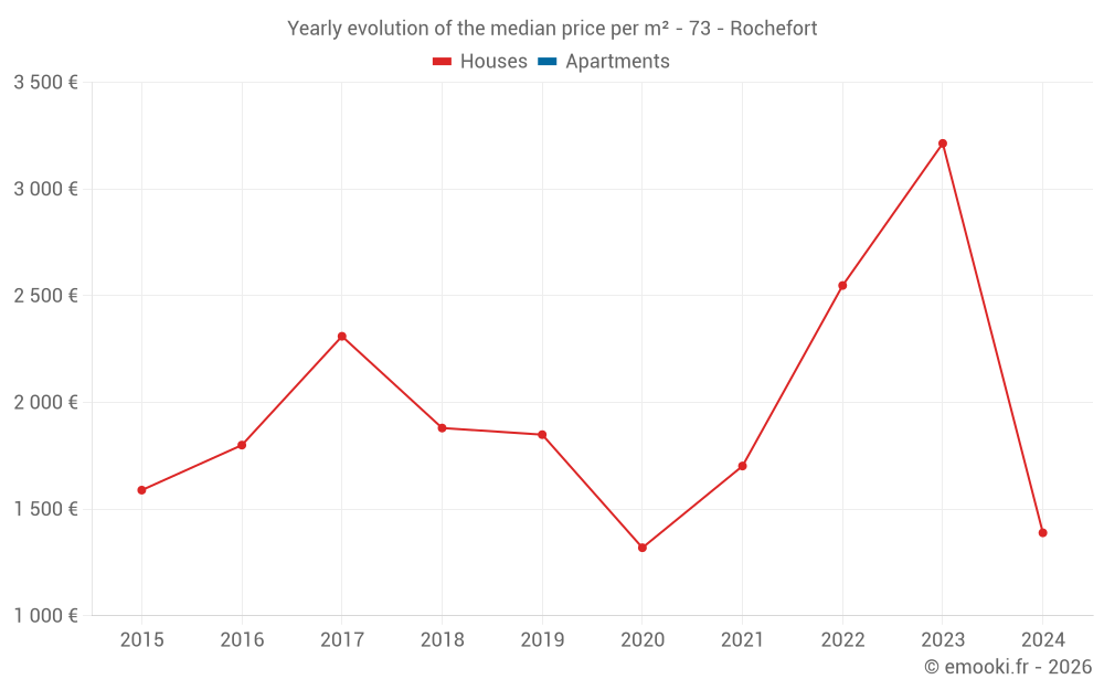 Evolution of the median price per m² of houses