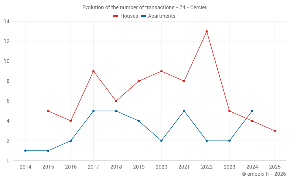 Real estate price map in the municipality of Cercier, choose a section to see transactions by parcel.