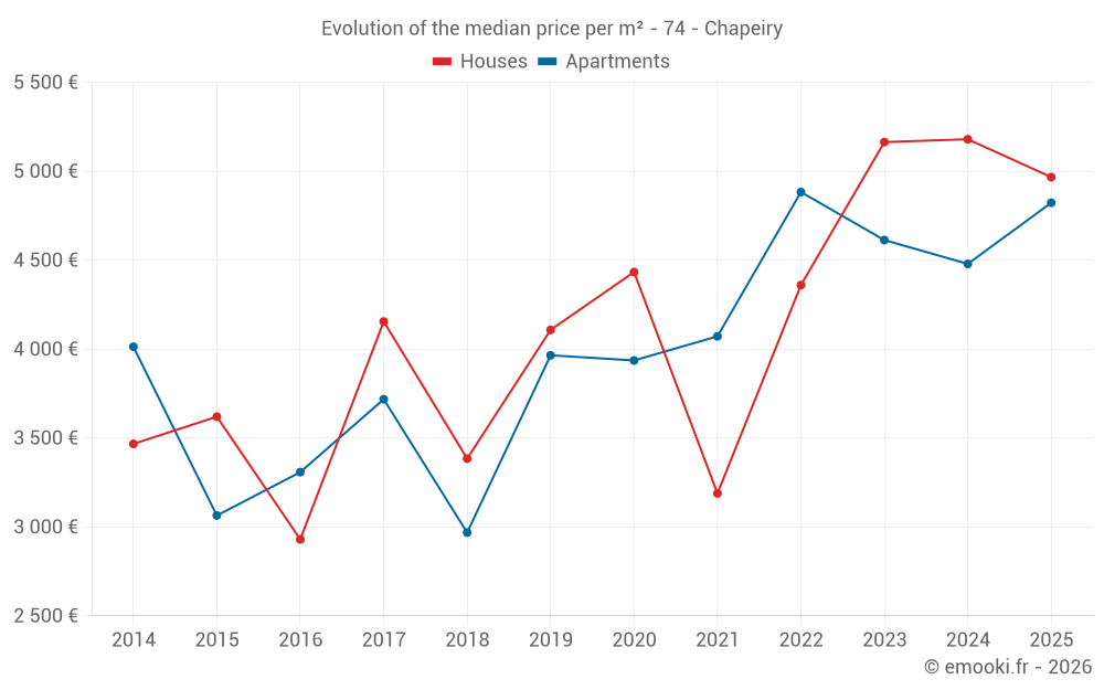 Real estate price map in the municipality of Chapeiry, choose a section to see transactions by parcel.
