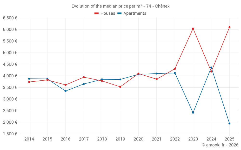 Real estate price map in the municipality of Chênex, choose a section to see transactions by parcel.
