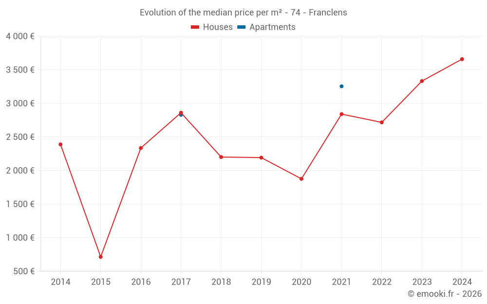 Real estate price map in the municipality of Franclens, choose a section to see transactions by parcel.