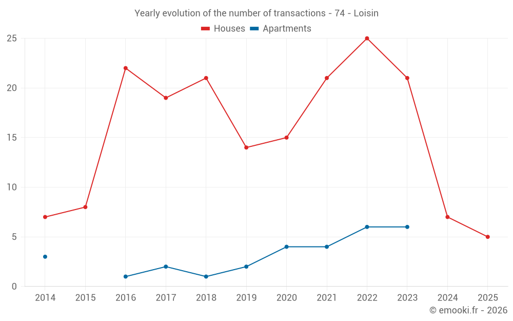 The median price on the 24 house transactions of the last 24 months in the municipality of Loisin was 4 232 € per square meter for a median property value of 397 500 €. Over this period, 60% of transactions were between 3 011 and 4 995 € per square meter (from the 2nd to the 8th deciles).