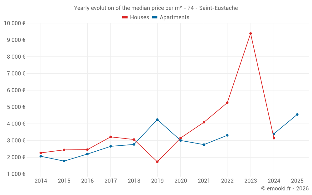 Evolution of the median price per m² of houses
