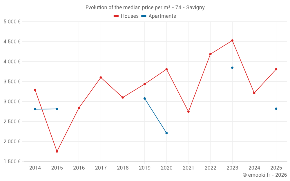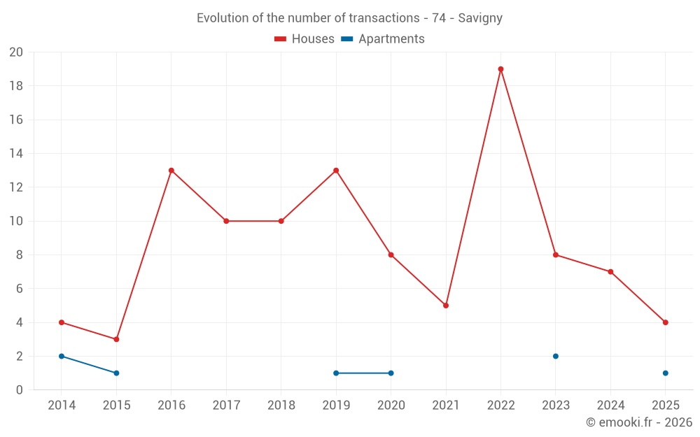 The median price on the 14 house transactions of the last 24 months in the municipality of Savigny was 3 228 € per square meter for a median property value of 355 600 €. Over this period, 60% of transactions were between 2 337 and 4 649 € per square meter (from the 2nd to the 8th deciles).