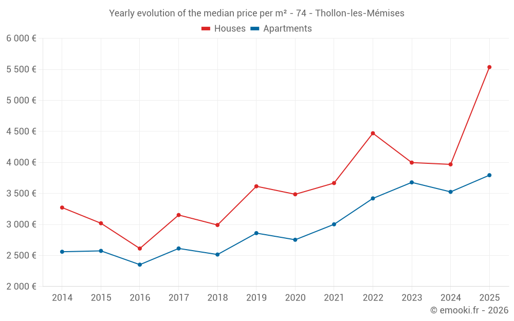 What is the price per m2 of houses in Thollon-les-Mémises?