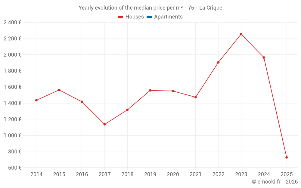 Real estate price map in the municipality of La Crique, choose a section to see transactions by parcel.
