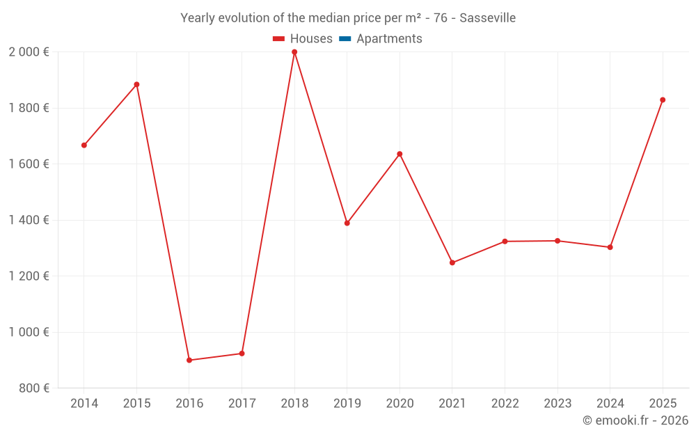 Evolution of the median price per m² of houses