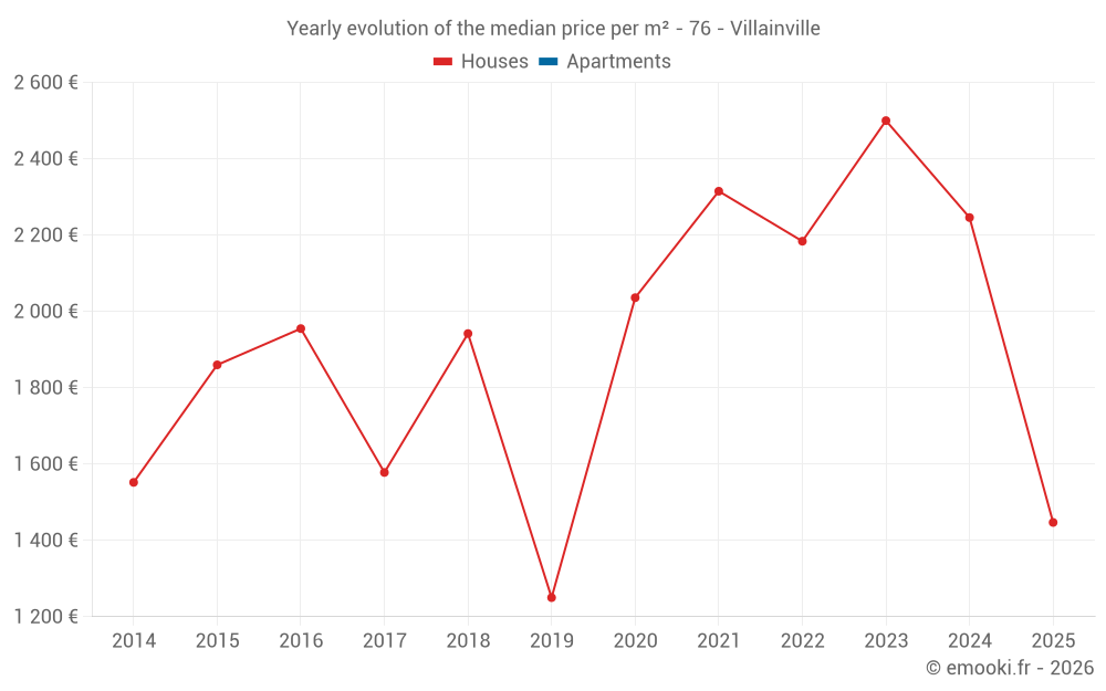 Evolution of the median price per m² of houses
