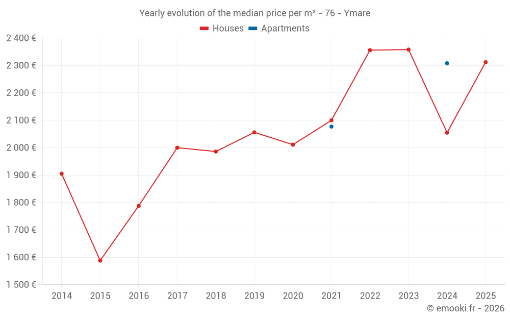 What is the price per m2 of houses in Ymare?
