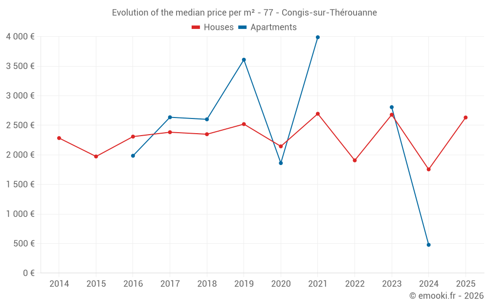 Median price on the 23 transactions of the last 12 months.