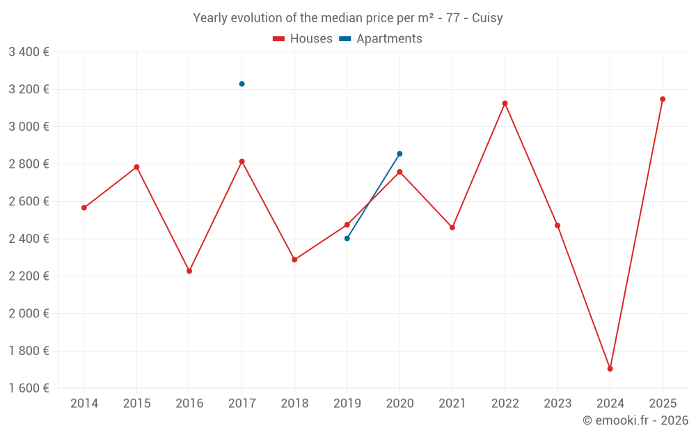 Real estate price map in the municipality of Cuisy, choose a section to see transactions by parcel.