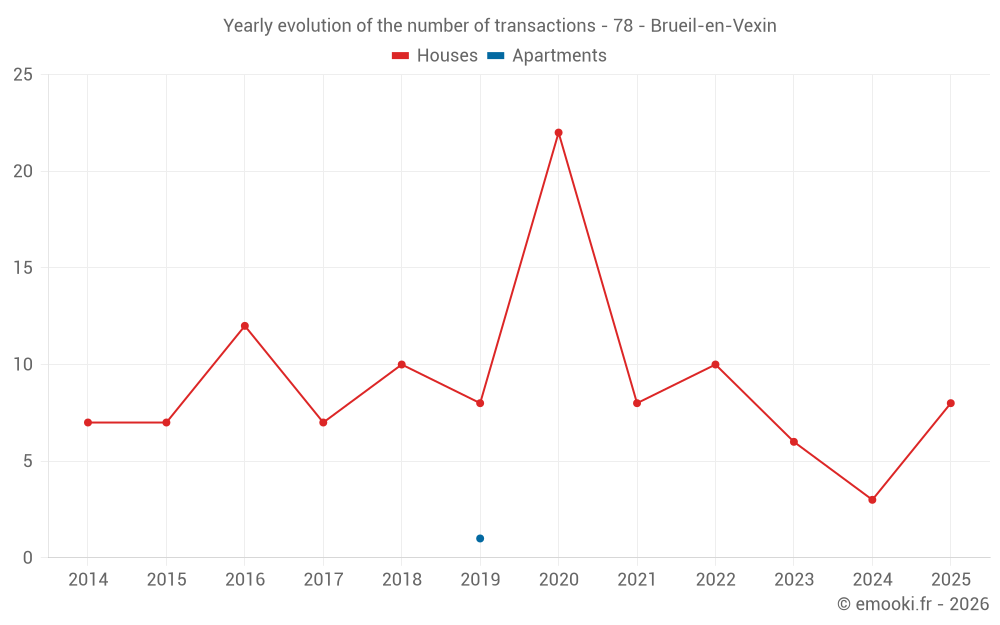The price per m² of houses has decreased by 16% since 3 years, but it has increased by 20% in 8 years.