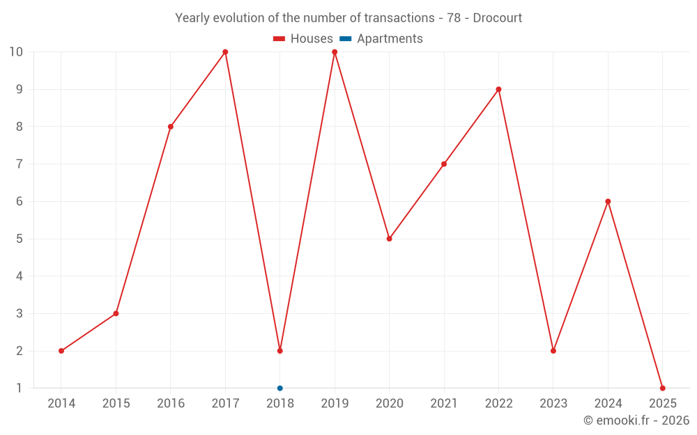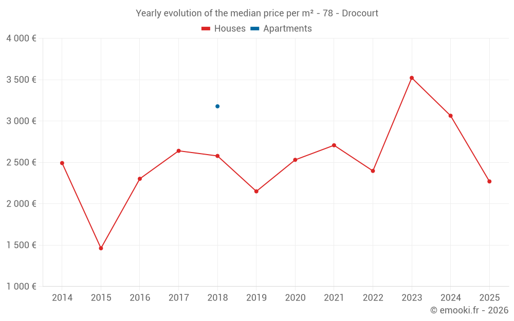 Real estate price map in the municipality of Drocourt, choose a section to see transactions by parcel.