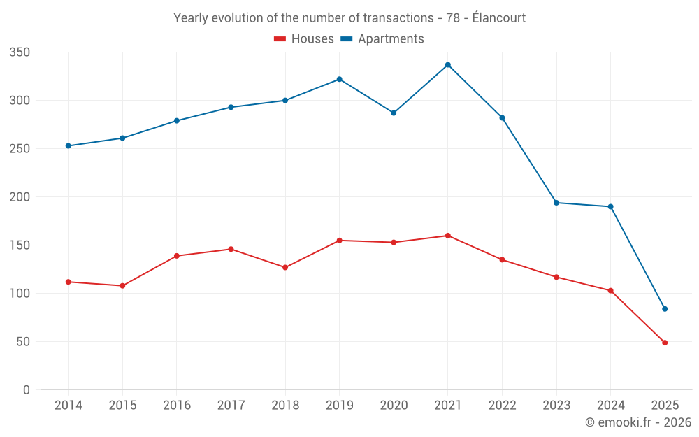 The median price on the 29 house transactions of the last 3 months in the municipality of Élancourt was 3 040 € per square meter for a median property value of 320 000 €. Over this period, 60% of transactions were between 2 719 and 3 386 € per square meter (from the 2nd to the 8th deciles).