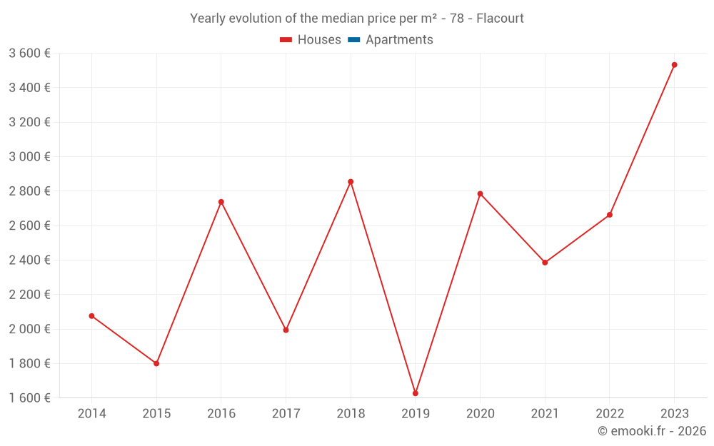 Real estate price map in the municipality of Flacourt, choose a section to see transactions by parcel.