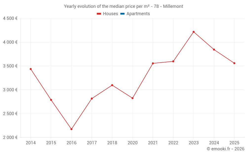 Real estate price map in the municipality of Millemont, choose a section to see transactions by parcel.