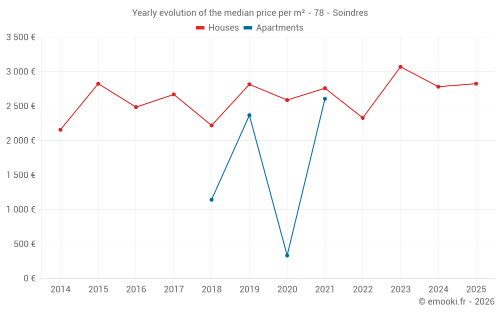 Price per m² in Soindres