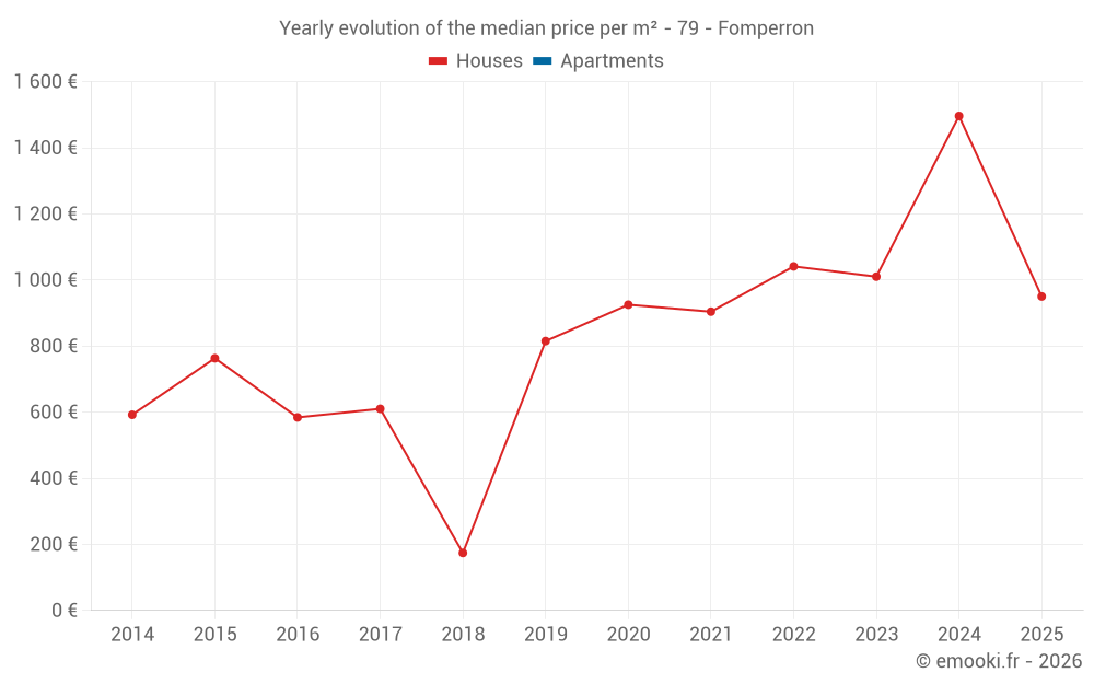 Real estate price map in the municipality of Fomperron, choose a section to see transactions by parcel.