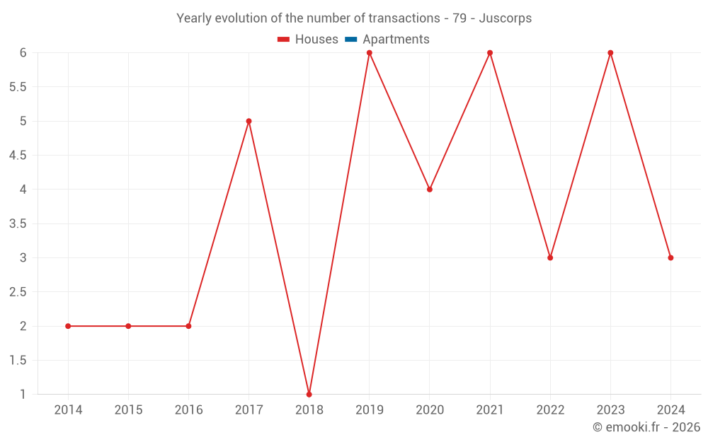 Real estate price map in the municipality of Juscorps, choose a section to see transactions by parcel.