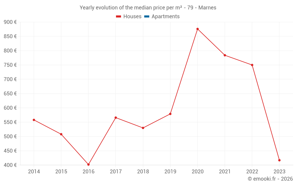 Real estate price map in the municipality of Marnes, choose a section to see transactions by parcel.