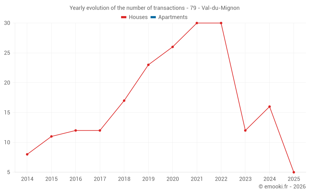 The median price on the 25 house transactions of the last 24 months in the municipality of Val-du-Mignon was 1 250 € per square meter for a median property value of 145 000 €. Over this period, 60% of transactions were between 883 and 1 583 € per square meter (from the 2nd to the 8th deciles).