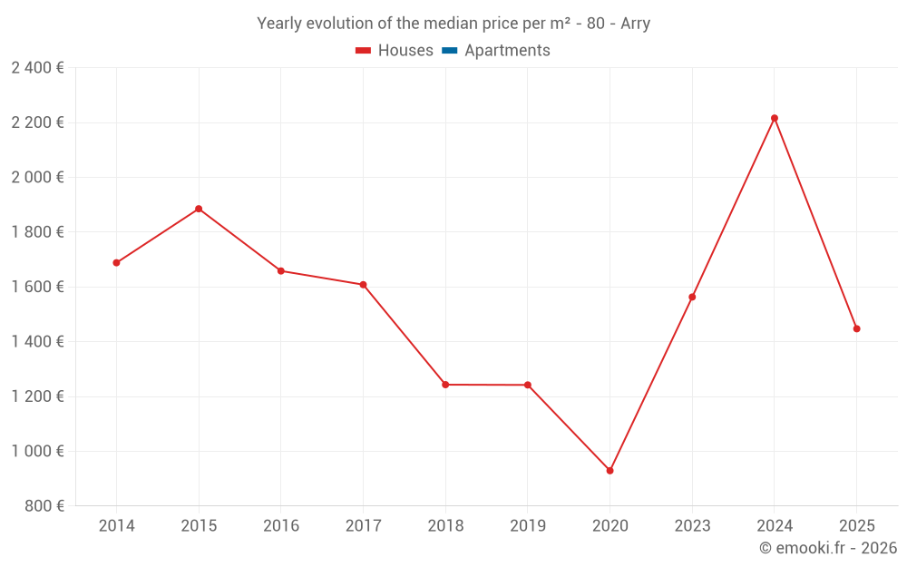 Evolution of the median price per m² of houses