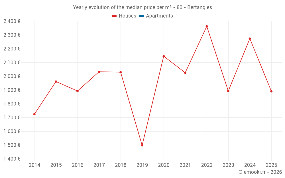 Real estate price map in the municipality of Bertangles, choose a section to see transactions by parcel.