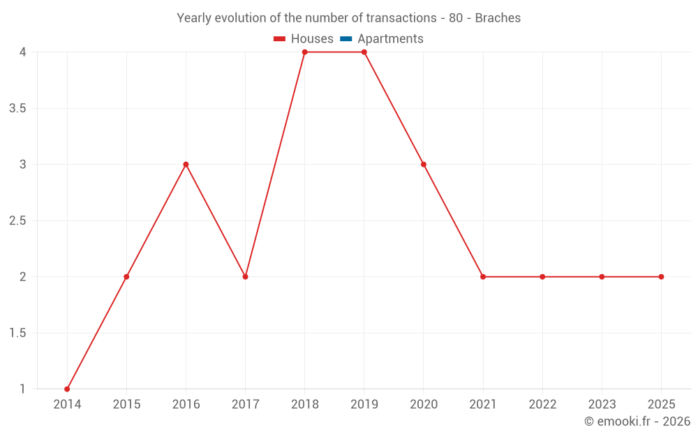 Real estate price map in the municipality of Braches, choose a section to see transactions by parcel.