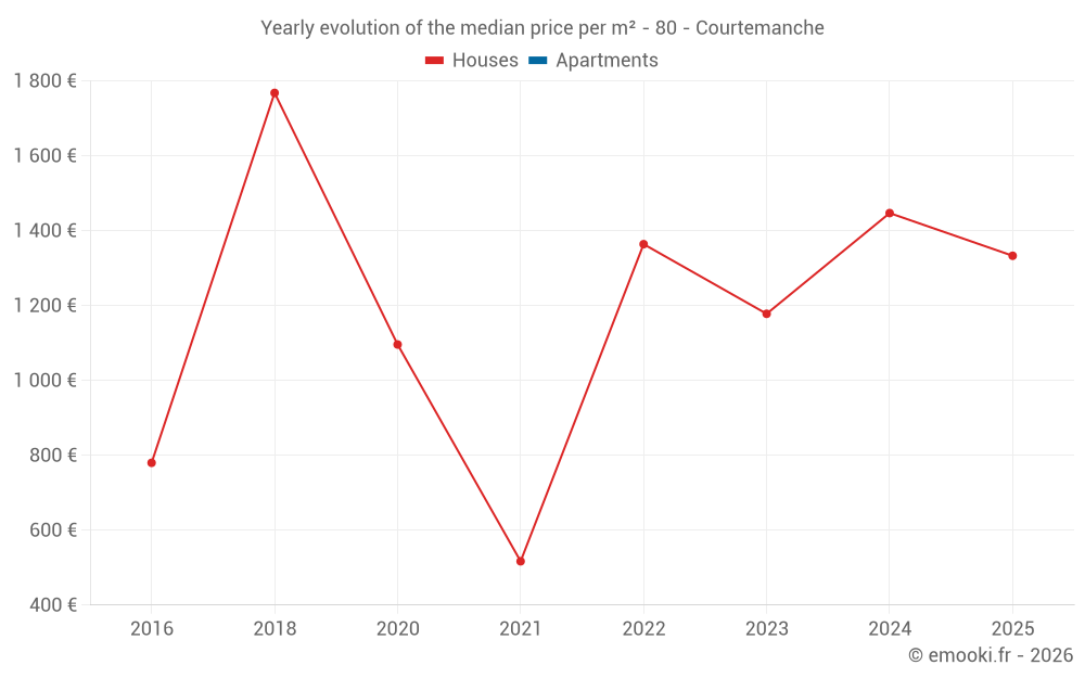 Real estate price map in the municipality of Courtemanche, choose a section to see transactions by parcel.