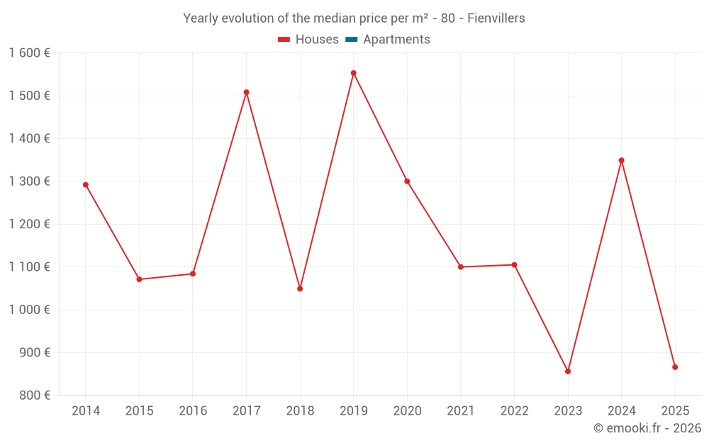 Real estate price map in the municipality of Fienvillers, choose a section to see transactions by parcel.
