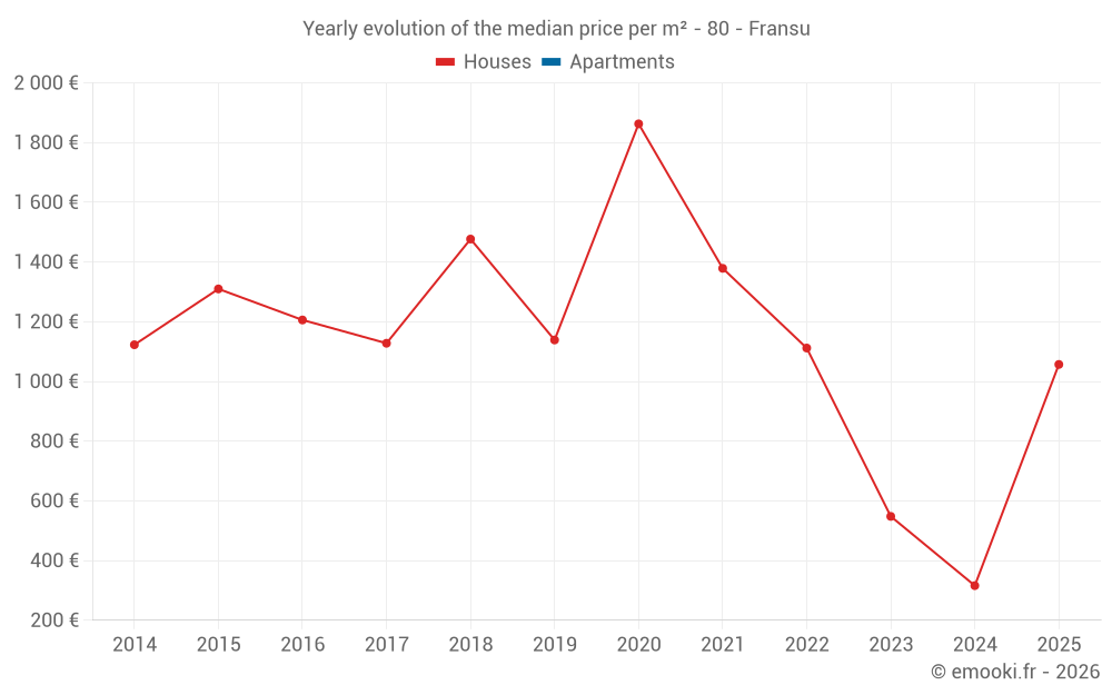 Real estate price map in the municipality of Fransu, choose a section to see transactions by parcel.