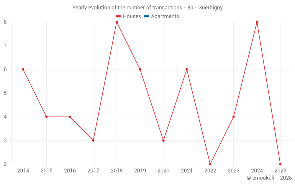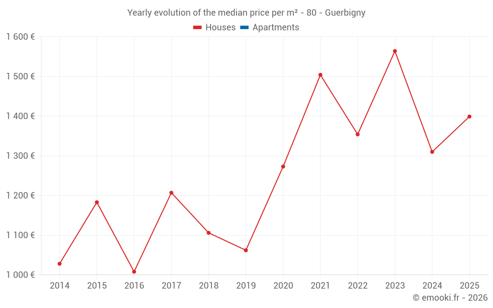 Real estate price map in the municipality of Guerbigny, choose a section to see transactions by parcel.
