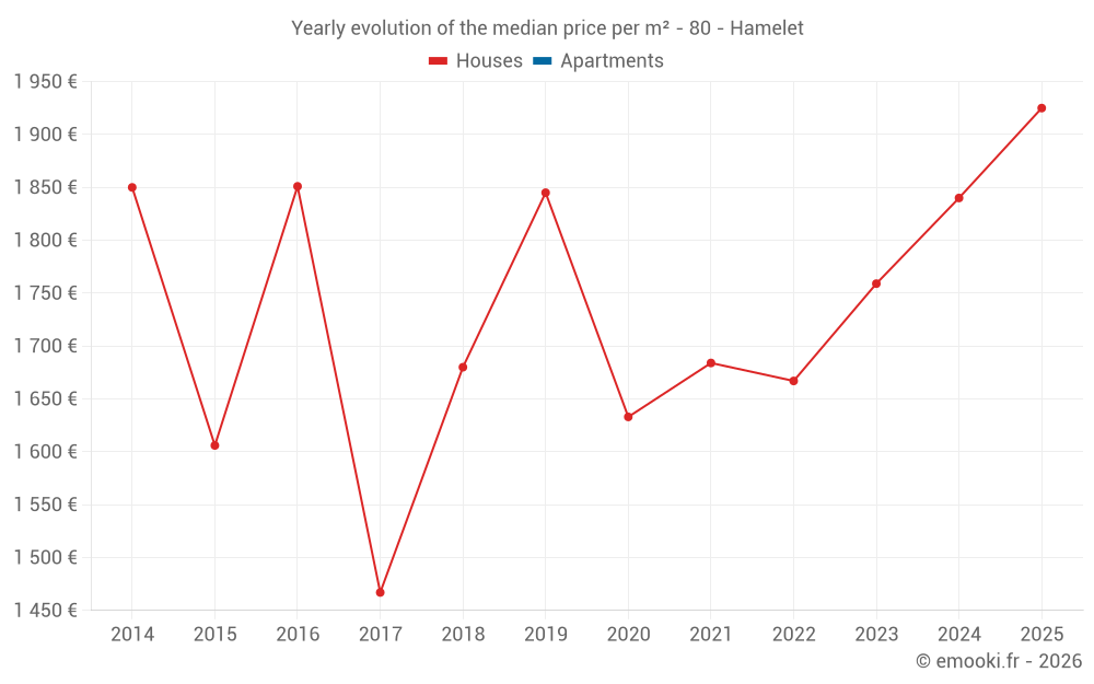 Real estate price map in the municipality of Hamelet, choose a section to see transactions by parcel.