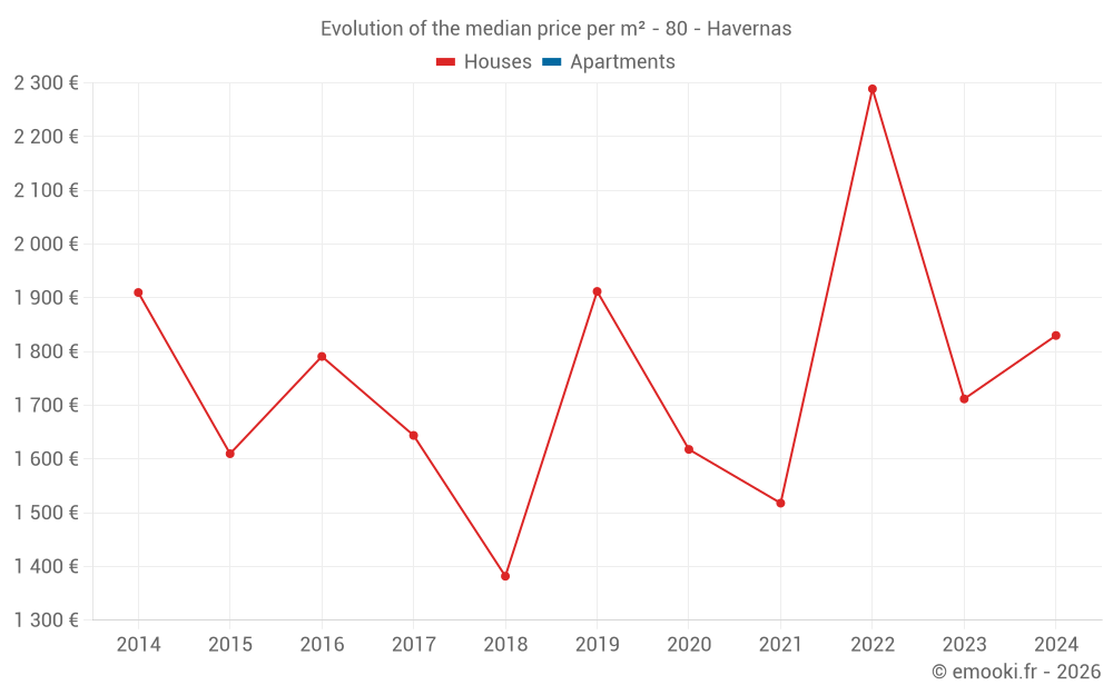 Real estate price map in the municipality of Havernas, choose a section to see transactions by parcel.