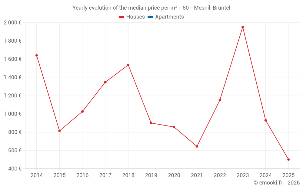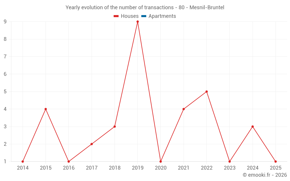 Real estate price map in the municipality of Mesnil-Bruntel, choose a section to see transactions by parcel.