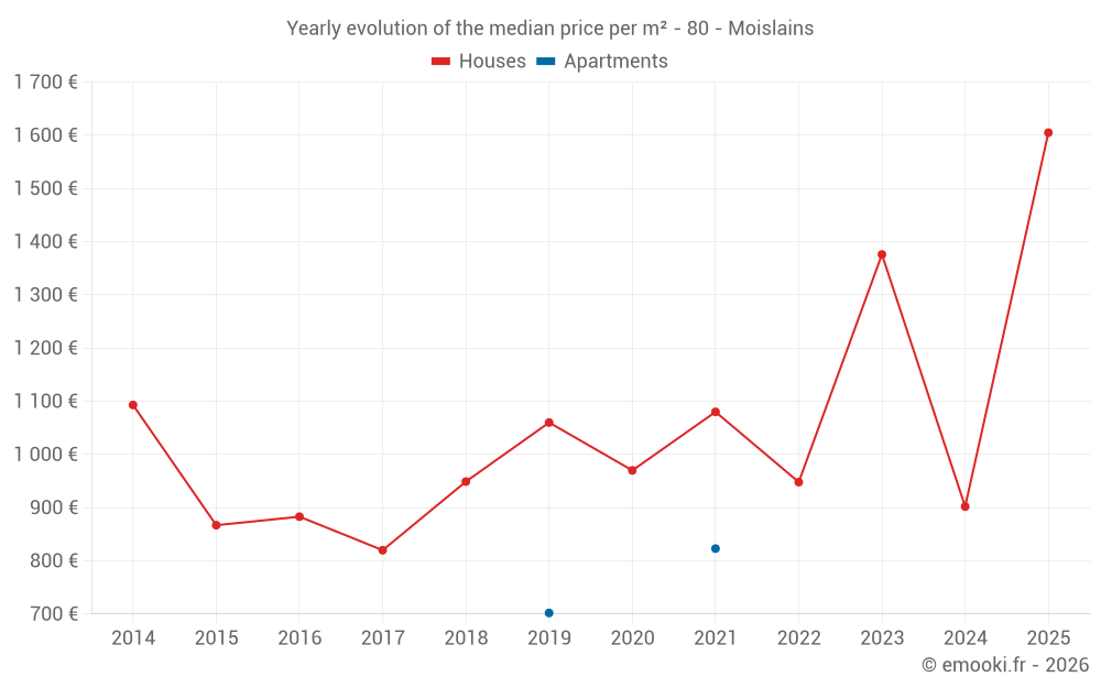 What is the price per m2 of houses in Moislains?