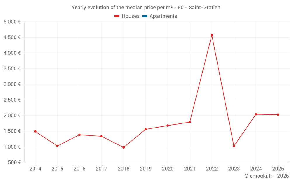 Evolution of the median price per m² of houses
