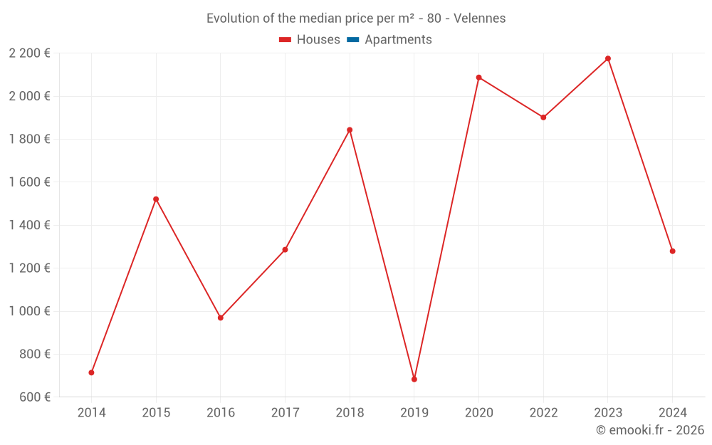 Real estate price map in the municipality of Velennes, choose a section to see transactions by parcel.