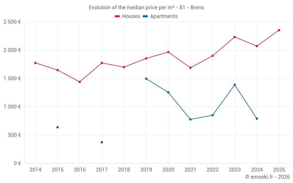 Median price on the 21 transactions of the last 12 months.