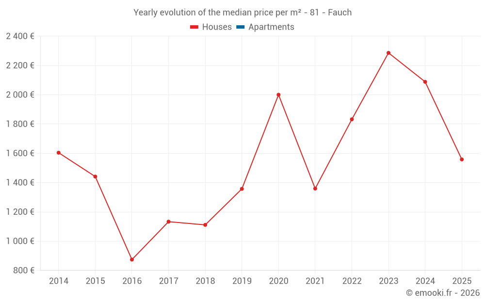 Real estate price map in the municipality of Fauch, choose a section to see transactions by parcel.