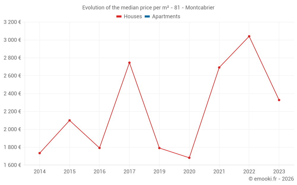 Real estate price map in the municipality of Montcabrier, choose a section to see transactions by parcel.
