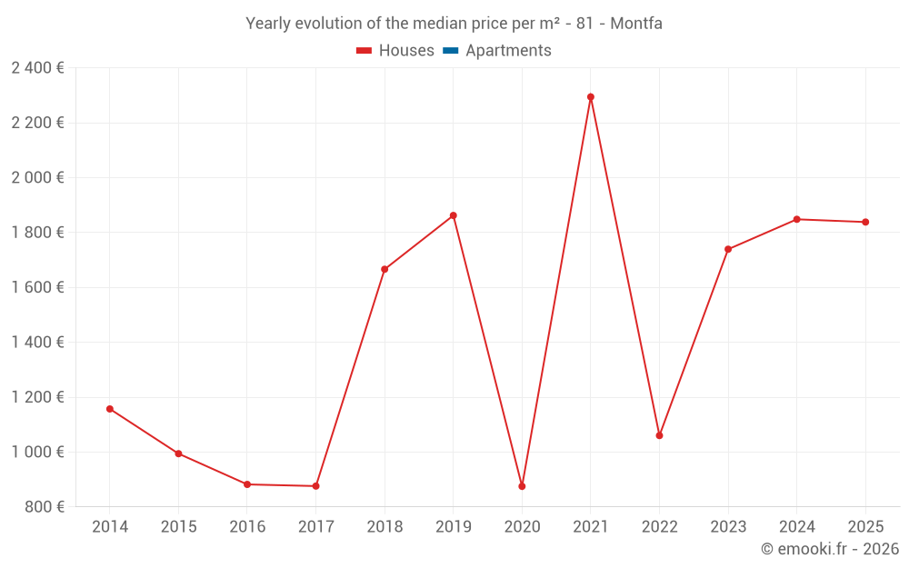 Evolution of the median price per m² of houses