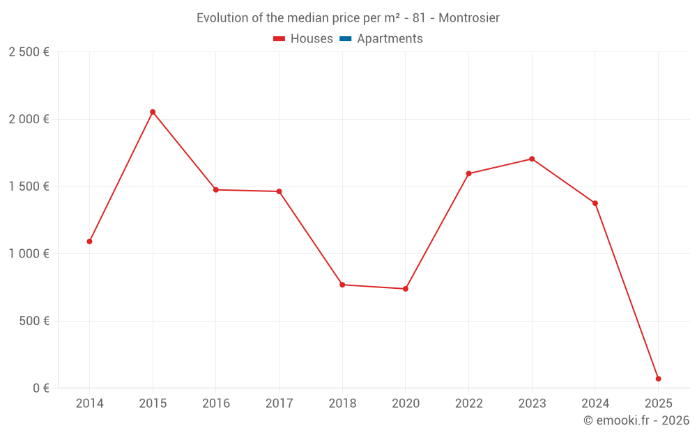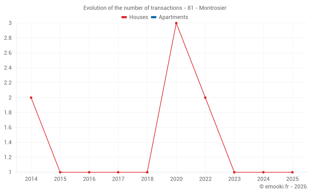 Real estate price map in the municipality of Montrosier, choose a section to see transactions by parcel.