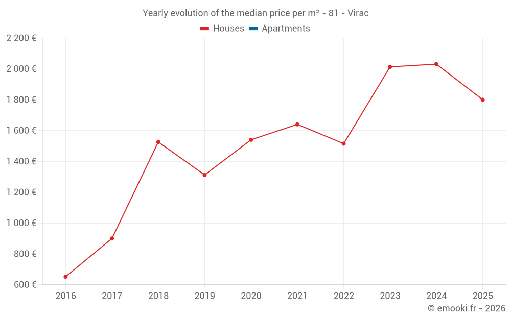 Evolution of the median price per m² of houses
