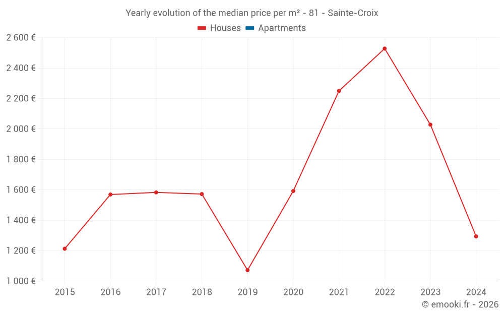 Evolution of the median price per m² of houses