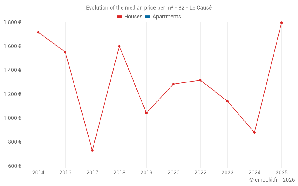 Real estate price map in the municipality of Le Causé, choose a section to see transactions by parcel.
